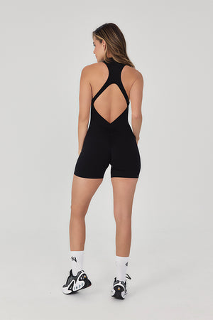 Enterizo corto de ajuste cómodo y favorecedor, diseñado para entrenar o usar en tu día a día. Su silueta estiliza el cuerpo y brinda soporte sin perder elegancia.