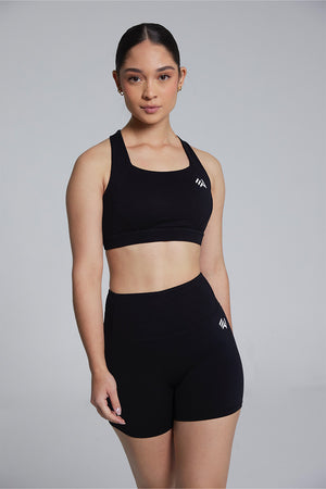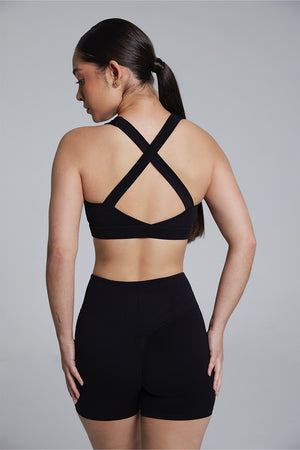 Set corto compuesto por top y short, de diseño básico y práctico. Ofrece un ajuste cómodo, libertad de movimiento y versatilidad para actividades activas.