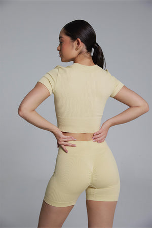 Set compuesto por short y camisa con mangas, de ajuste cómodo y diseño funcional. Ofrece ligereza, libertad de movimiento y versatilidad para rutinas activas.